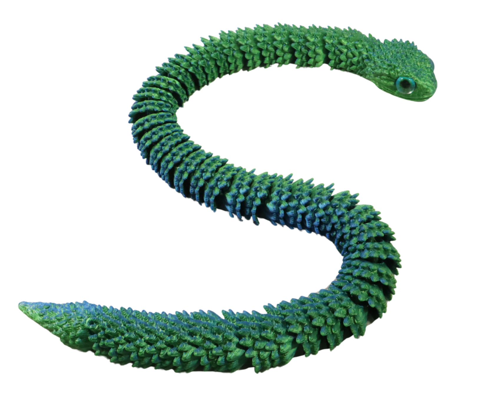 Slither into fun with this eye-catching 3D printed snake. Measuring 30cm in length, this snake features vibrant colors to choose from--Black, White, Green, RGB, or Purple--and ultra-flexible, articulated joints that let it twist, curl, and move with lifelike motion.